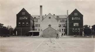 Tennis courts rear of buildings